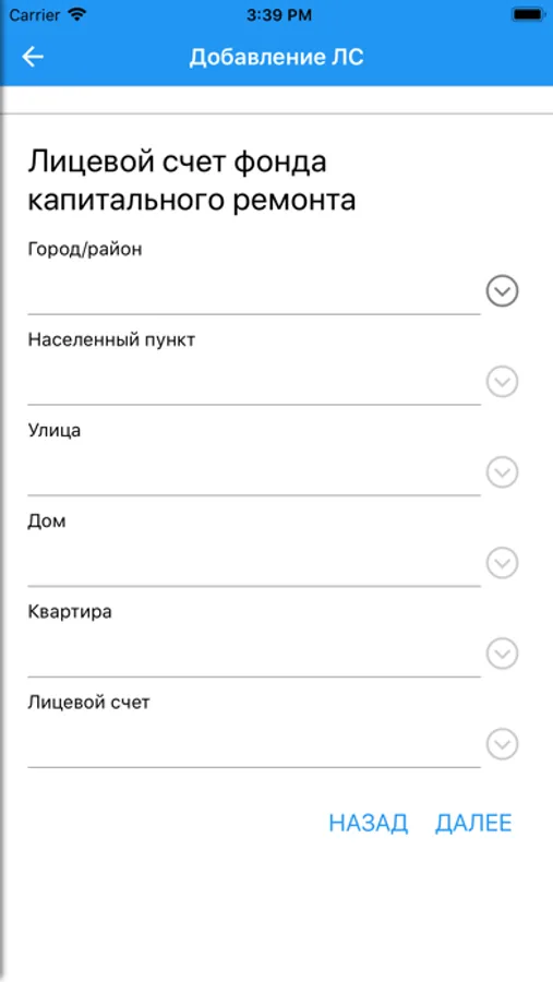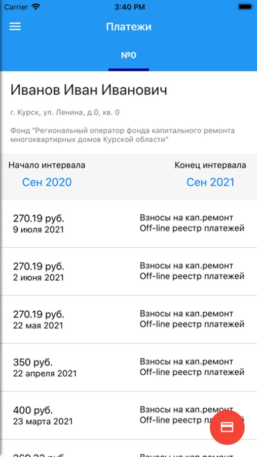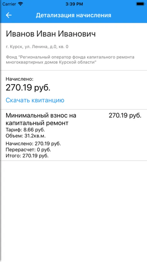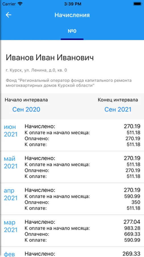 - Просмотр истории начислений и оплат