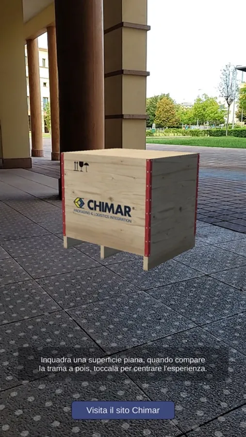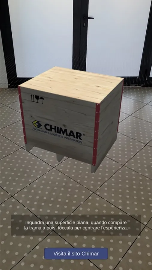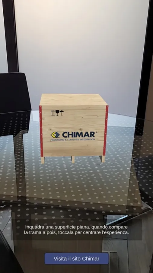 Utilizza l'App per posizionare l'imballaggio in 3D direttamente sul terreno, sul pavimento o sulla tua scrivania, interagendo potrai muoverlo e ridimensionarlo a piacimento.