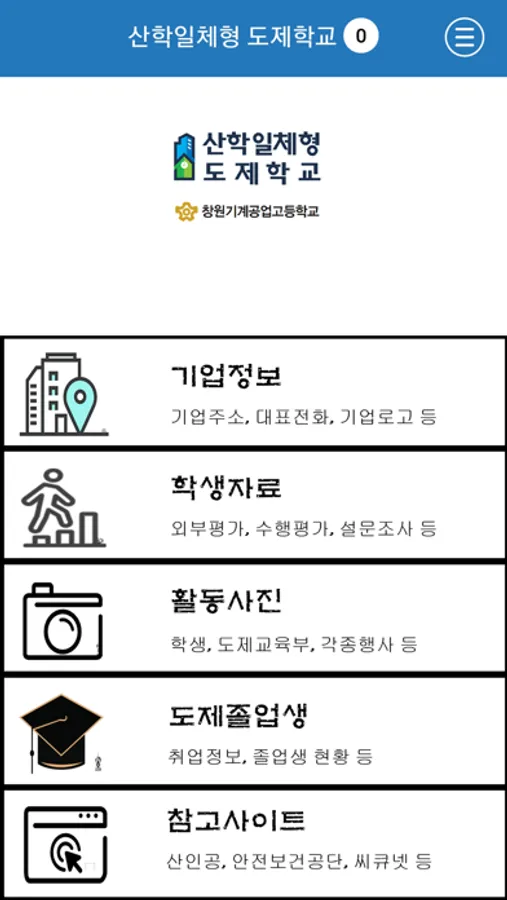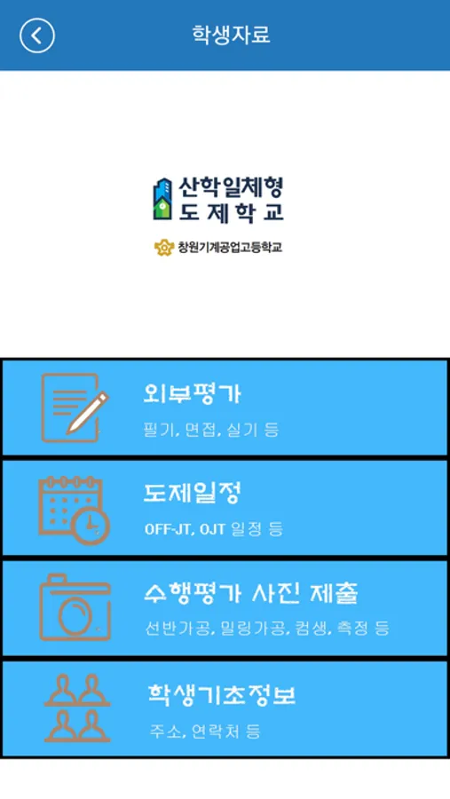 기업정보페이지에서는 도제학생들이 기업 출근시 필요한 주소와 전화번호 등을 등록하여 사용. 학생자료 페이지에 외부평가 관련한 기출문제 및 공개문제를 탑재하여 외부평가 합격률 상승을 기대. 또한 설문조사 양식을 탑재하여 도제교육부에서 학생 및 기업 정보를 효율적으로 수집할 수 있도록 함. 활동사진은 시간순으로 도제교육부 활동사진을 등록하여 도제교육부 활동을 공유하고 성과보고서에 사용할 예정임. 도제졸업생 페이지에서 창원기공의 채용정보를 푸시기능을 통해 실시간으로 전달하여 취업률 향상을 도모함. 참고사이트 페이지에서는 도제관련 사이트를 링크해 이 어플에서 도제정보를 보다 쉽게 접근할 수 있도록 함.