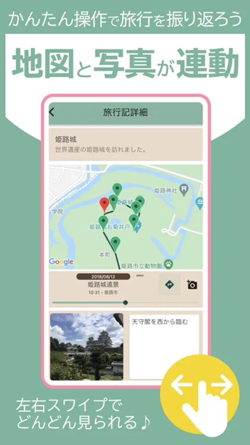 文章をほとんど入力しなくても、視覚的に楽しい旅行記を作ることができます。
