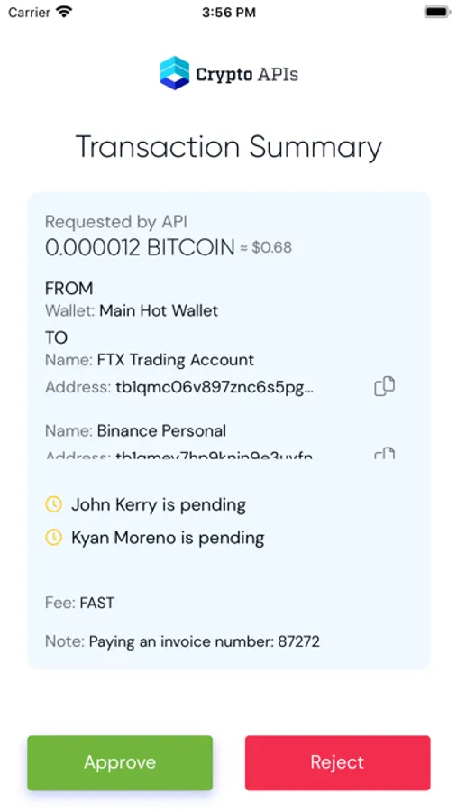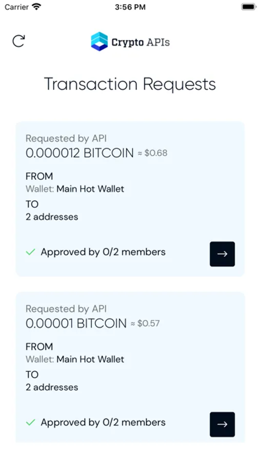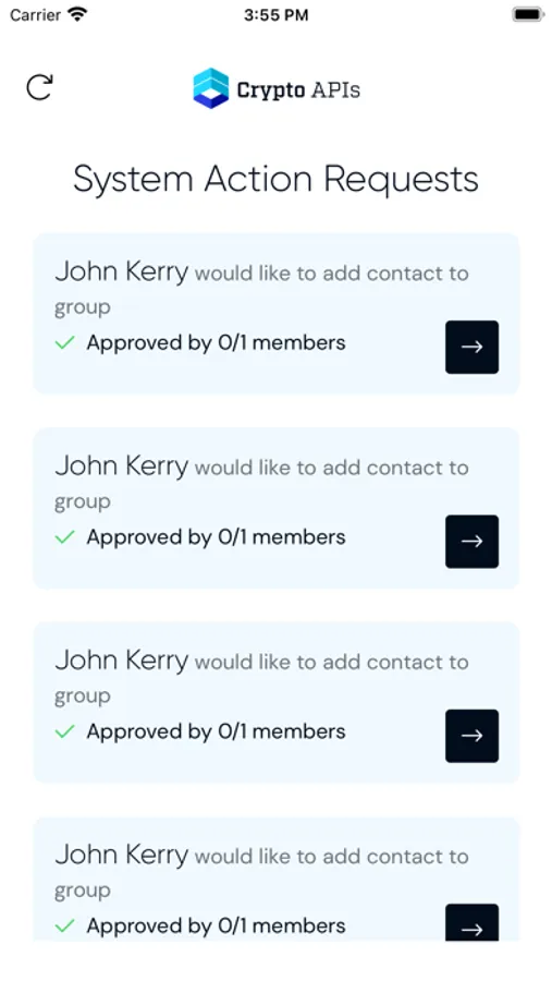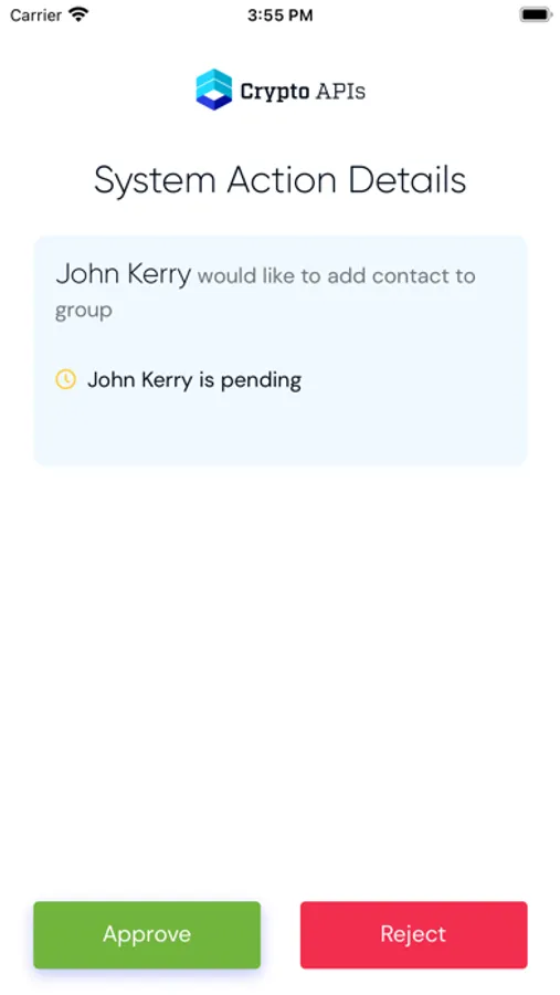 The Crypto APIs Approver application allows you to on the go utilize specific administrative policies and rules in order to securely authorize configuration updates and crypto transactions. Approve or reject both Transaction requests from your Wallet and System action requests.