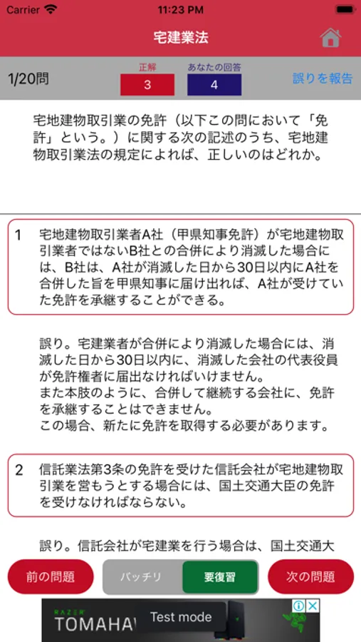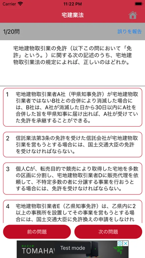 宅建士の試験対策用として活用できる過去問演習アプリ。