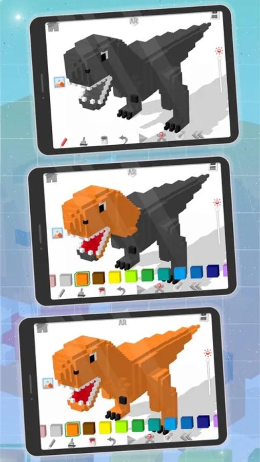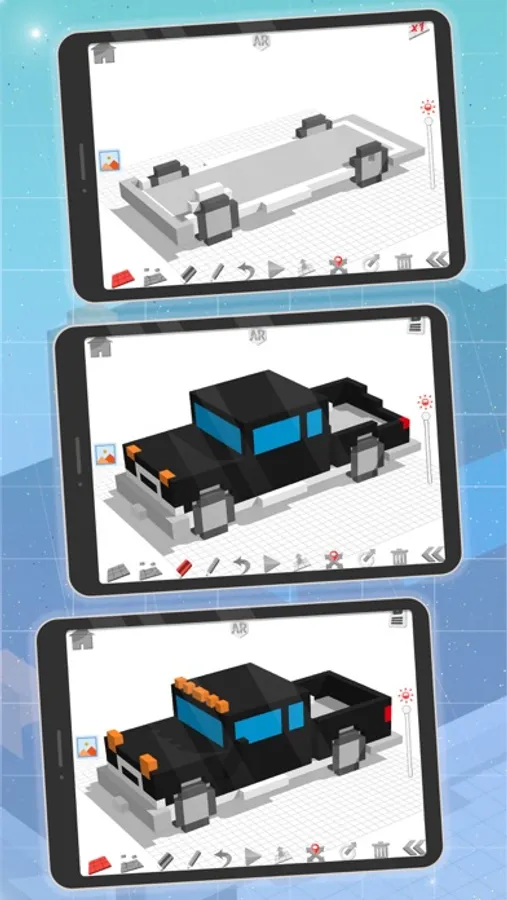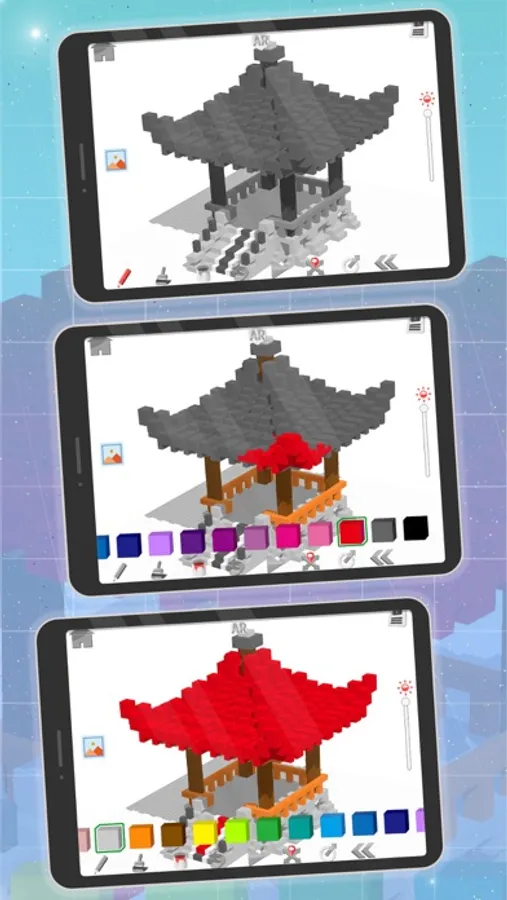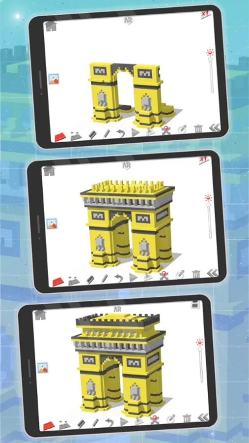 6. Augmented Reality - models can also be combined with reality through AR technology. Activate the AR function and camera to project the model into reality. Put the buildings into reality to simulate a small city, or put the animals into reality to simulate a zoo.