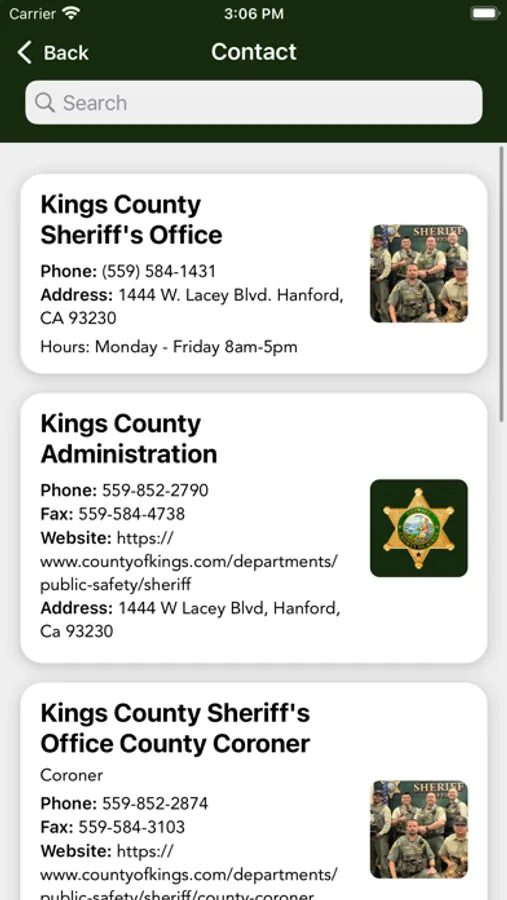 The Kings County California Sheriff’s Office mobile application is an interactive app developed to help improve communication with area residents. The Kings County Sheriff App allows residents to connect with the Kings County Sheriff’s Office by reporting crimes, viewing inmates, and other interactive features, as well as providing the community the latest public safety news and information.