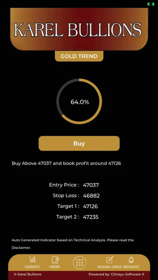 The app has a special feature of predicting GOLD TREND using various analysis tools.