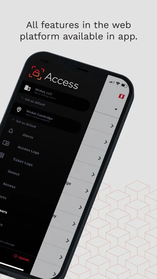 Manage your Wicket Access account on the go with our mobile app, and enjoy all of the functionality of the Access web application right on your smartphone. Account admins and users can manage people and permissions, monitor their access control and ticketing logs, configure devices for use in authentication, and more.