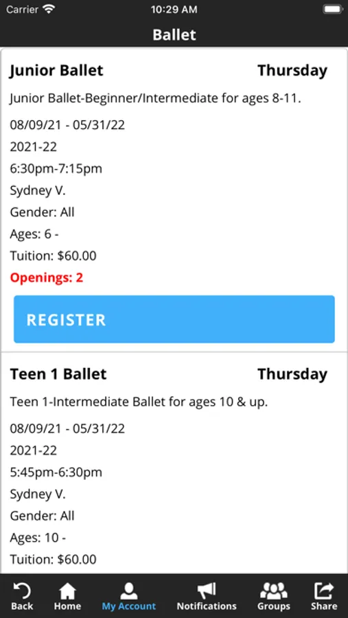 The CCAD app allows you to manage your account with ease, register for classes, parties, and special events. You'll also receive important notifications about class changes, closings, registration openings, special announcements, and upcoming events.
