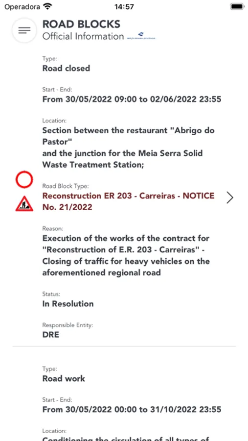 With Info Vias App, you have online access to traffic information on the regional roads of Madeira Island under the jurisdiction of DIREÇÃO REGIONAL DE ESTRADAS (DRE), including those granted to the Concessionaires VIALITORAL and VIAEXPRESSO.