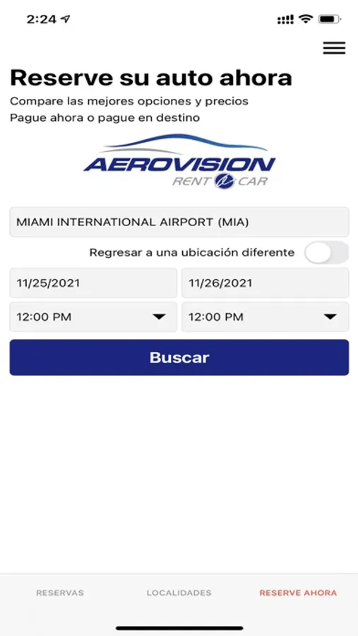 La aplicación de Aerovision SAS - Rent a Car, (www.aerovisionrentacar.com.co) ofrece la opción de cotizar y reservar la renta de un auto con 8 de las principales compañías de alquiler a nivel mundial. Con Aerovisionrentacar.com.co puedes comparar disponibilidad y tarifas simultáneamente y en tiempo real debido a que está conectada directamente al sistema de reservas de estas empresas.