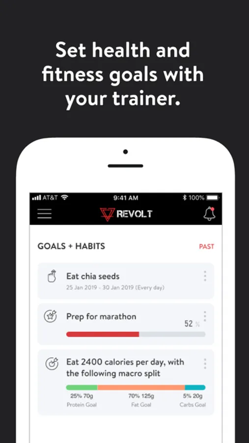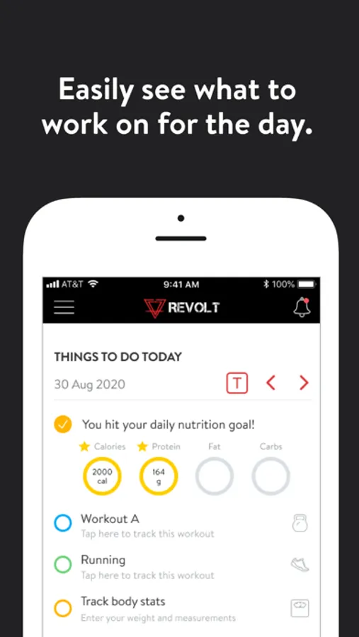 With the REVOLT app, you can start tracking your workouts and meals, measuring results, and achieving your fitness goals, all with the help of REVOLT.