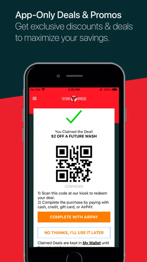 Use AirPay® to scan all your app payments and rewards directly to our pay stations, without ever touching our screens! Pay in the app with a card on file, or redeem bundles, loyalty rewards, and special deals with a QR code, for fast, safe, and secure transactions.