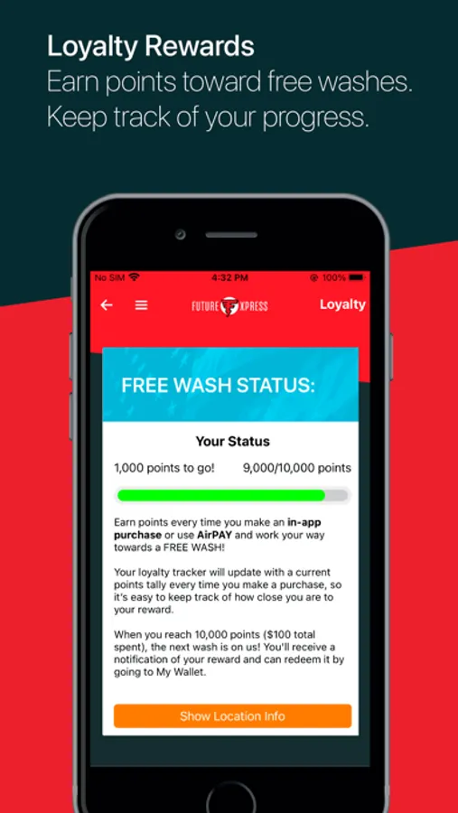Make contactless transactions, get app-only discounts, buy washes & bundles, earn loyalty points toward free washes, and more! For a safe, hassle-free, cutting-edge car wash experience!