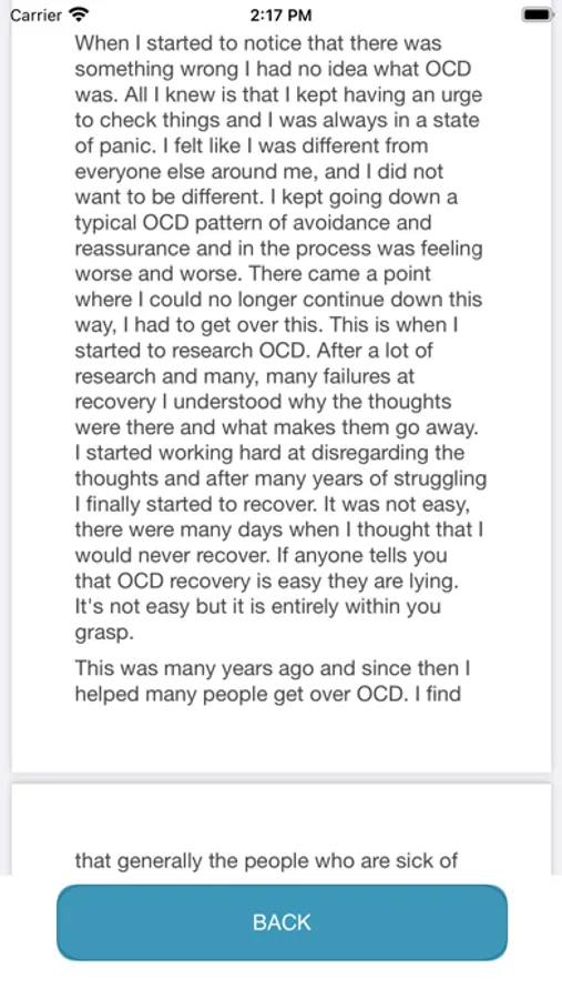 How To Get Over OCD E-Book and audiobook will explain to you exactly why the thoughts are there, why they are constantly coming into your mind, and most importantly, how to make them stop. As part of the app you also get a test to see if your current worry is OCD as well as a link to OCD groups.