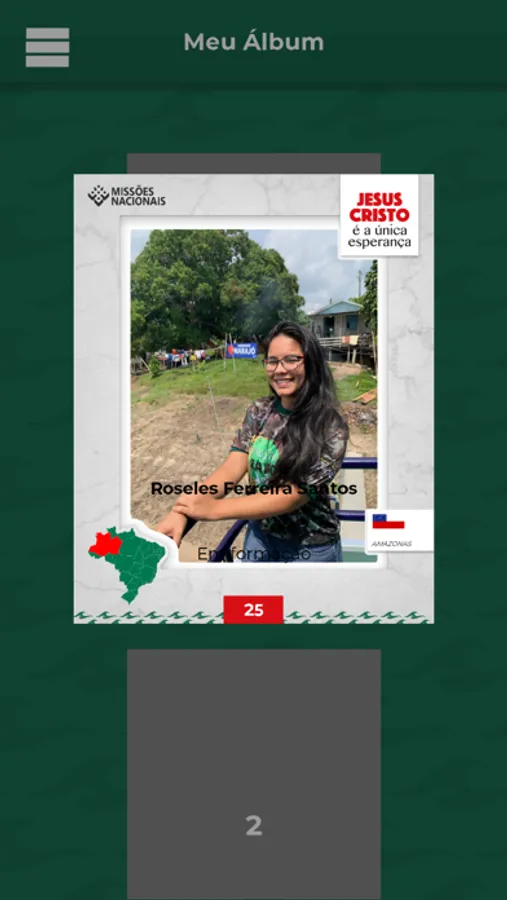 Essa é a segunda edição do Álbum de Figurinhas Em Campo! Esse app vai agitar ainda mais a Campanha 2021 “Jesus Cristo é a única Esperança” e com ele, você conhece os missionários e projetos de Missões Nacionais de todo o Brasil.