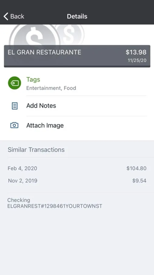• Keep your transactions organized with tags, notes and photos of receipts and checks