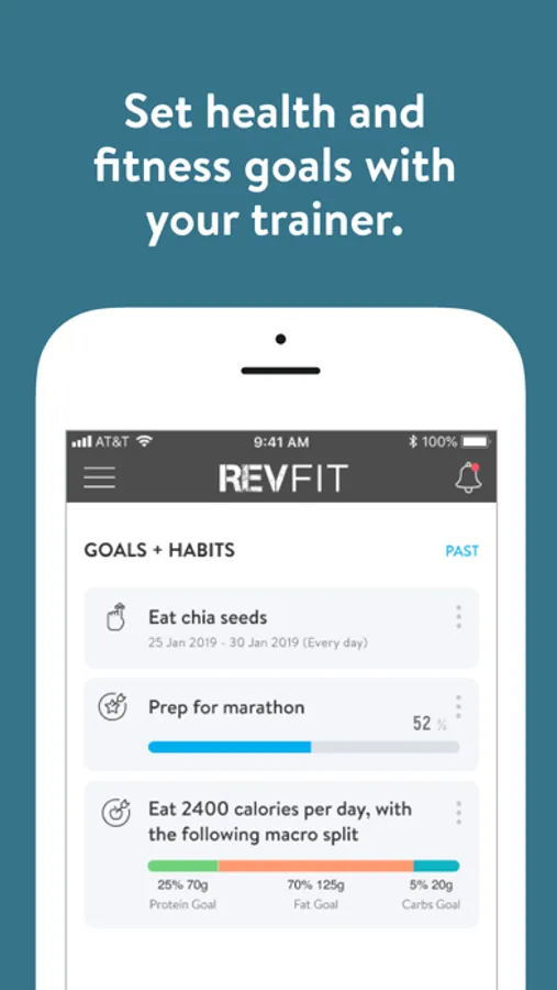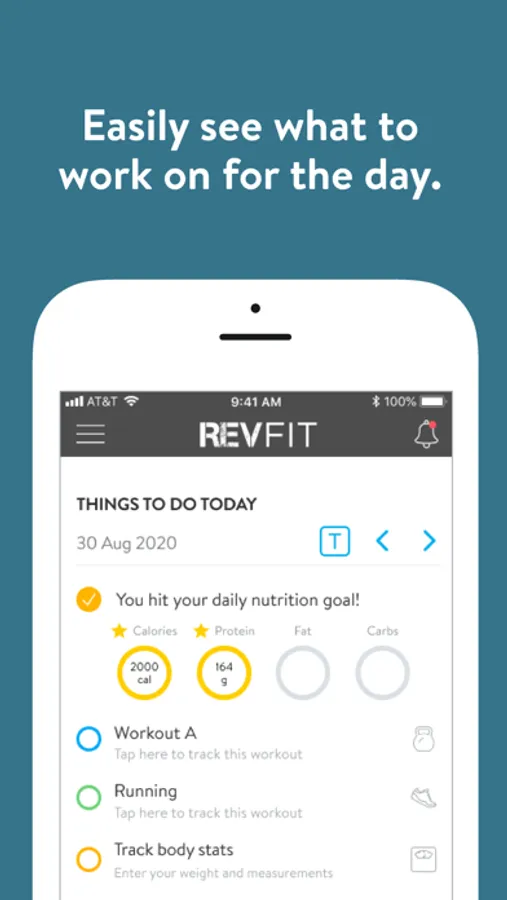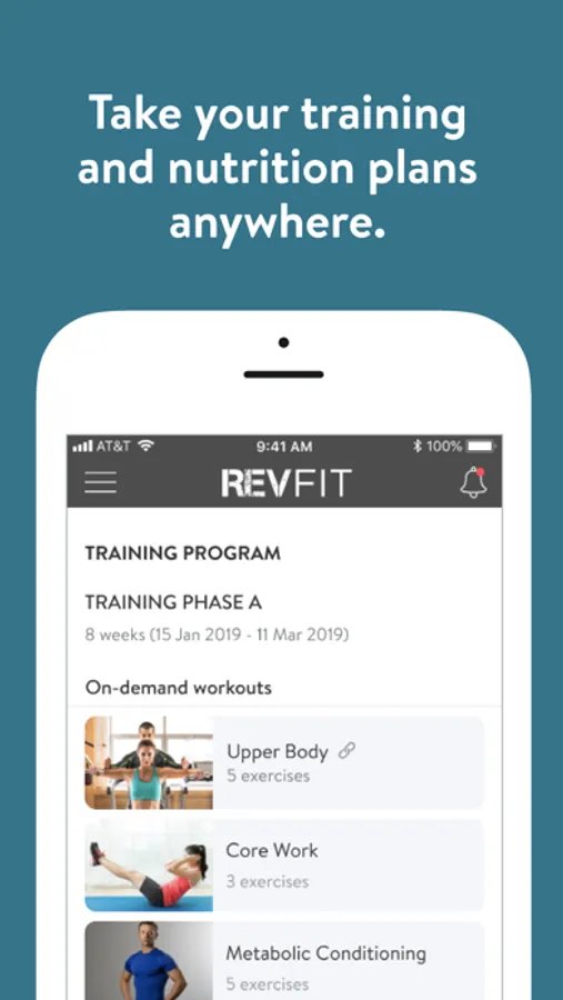 With the RevFit Online App, you can start tracking your workouts and meals, measuring results, and achieving your fitness goals, all with the help of your coach.