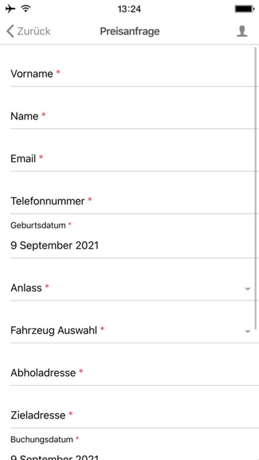 * Persönliche Daten sind automatisch im Anfrage-Formular ausgefüllt.