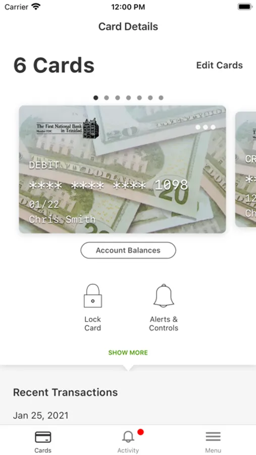 Protect your finances with this free app for The First National Bank in Trinidad debit cardholders. Use this app in addition to iBank Mobile Banking app to get the most benefit from your account.