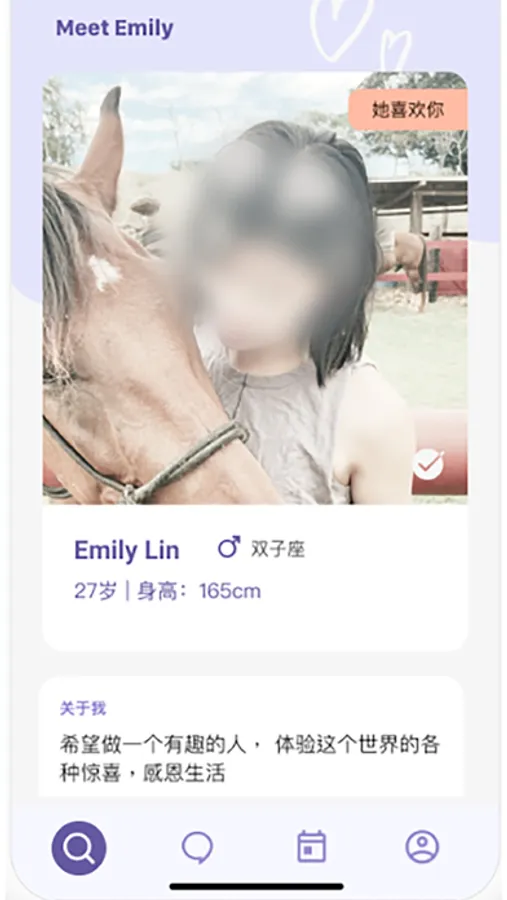 1. 模糊照片:所有照片中的人像都作了模糊处理。我们希望大家能对用户的内在多一刻的关注,不再因为一张“照骗”而错过了一个有趣的灵魂。