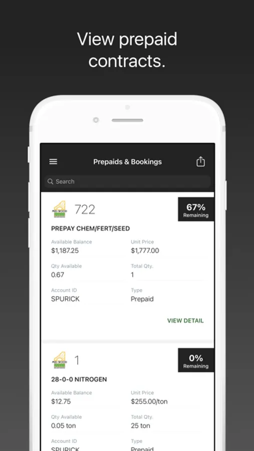 Prepaids/Bookings: See up-to-date info on prepaid or booked inputs