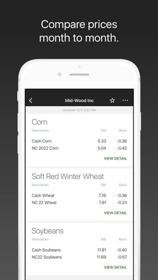 The Mid-Wood, Inc. app is an essential mobile solution that connects your operation to your grain facility, providing real-time, actionable information to help you manage and grow your business.
