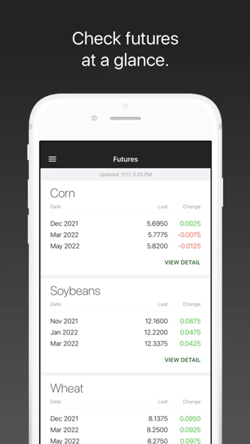 Futures: See Grains, Feed, Livestock, and Ethanol futures listed in order of your preference