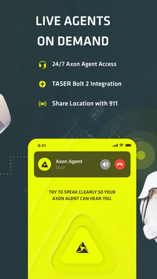 - 911 Help: Axon Agents can reach 911 in an emergency and monitor your safety until help arrives