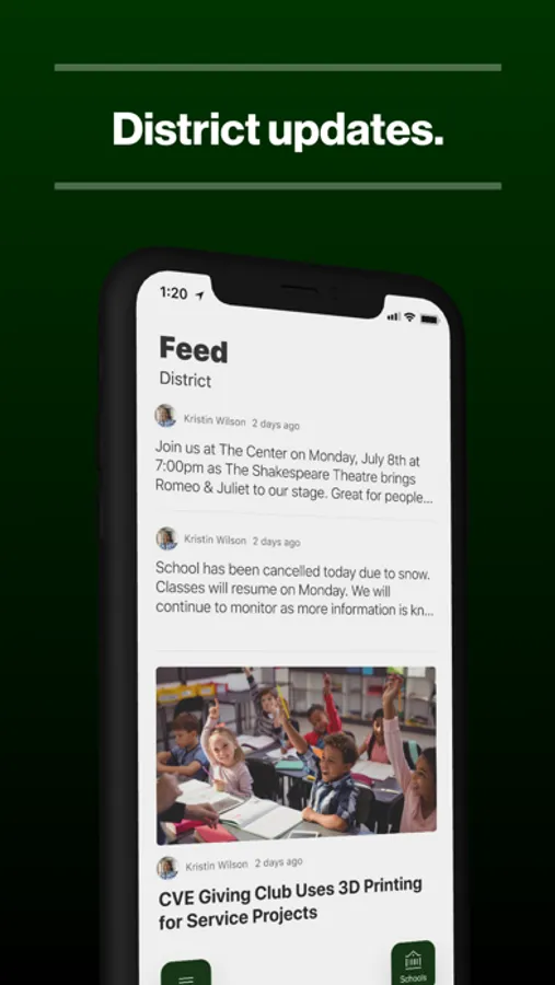 In the Live Feed is where you’ll find updates from the administration about what’s going on in the district right now. Whether that’s celebrating a student’s success, or reminding you about an upcoming deadline.