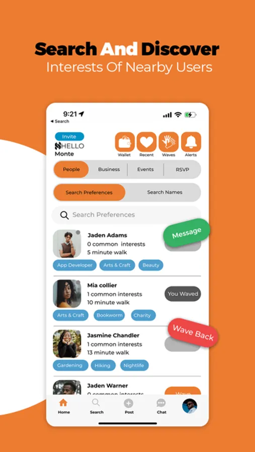 GoSayHELLO enables a user to discover nearby people, businesses, and events with similar interests within a minute walk. The wallet enables users to send and receive $HELLO rewards to other users on Algorand’s blockchain.