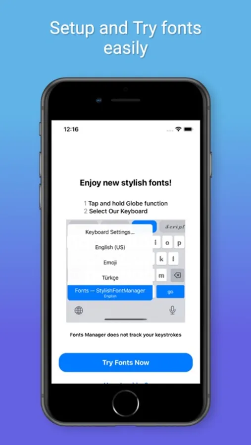 Make your social media profiles stand out with Fonts, or send cool texts to your friends. Turn heads, stand out, get creative! You can use Fonts keyboard for your: