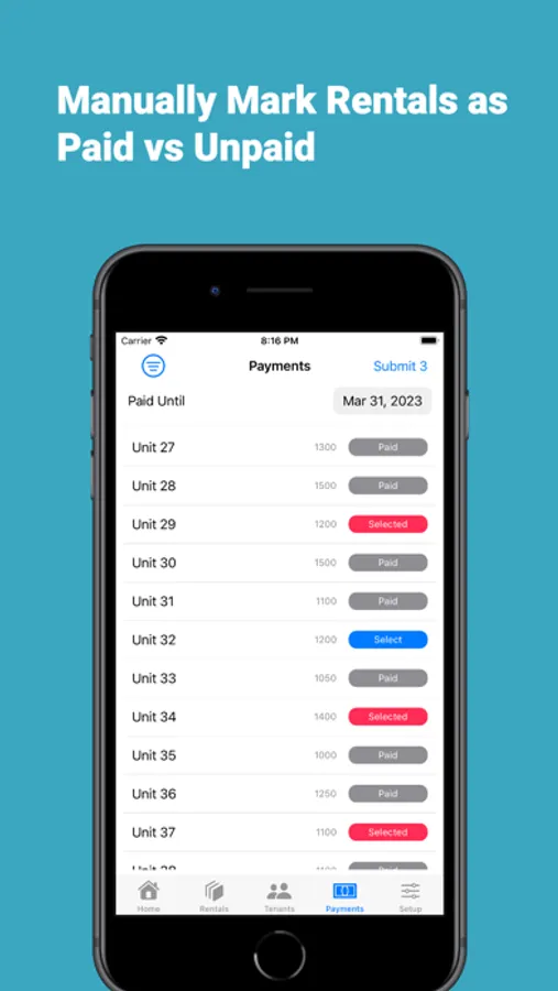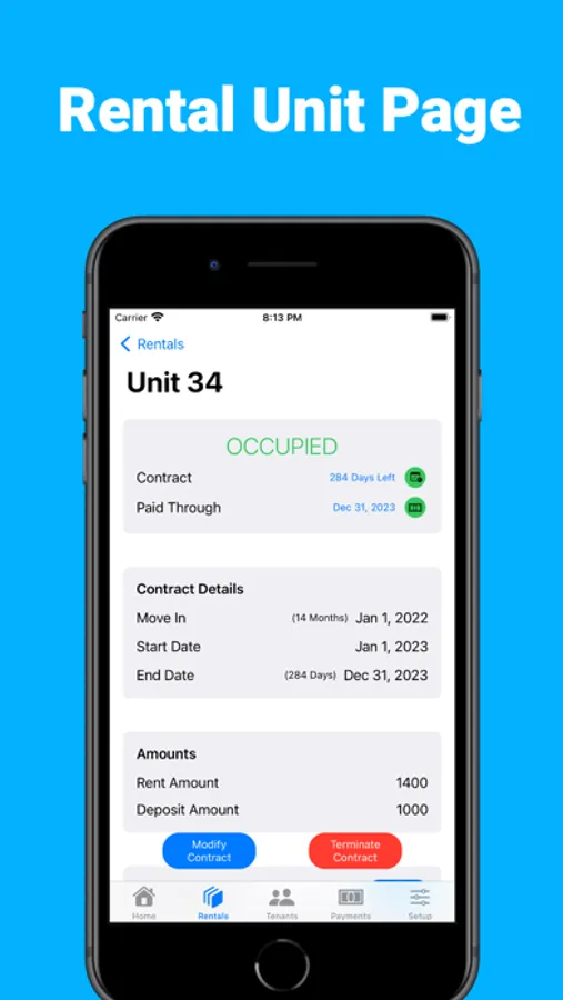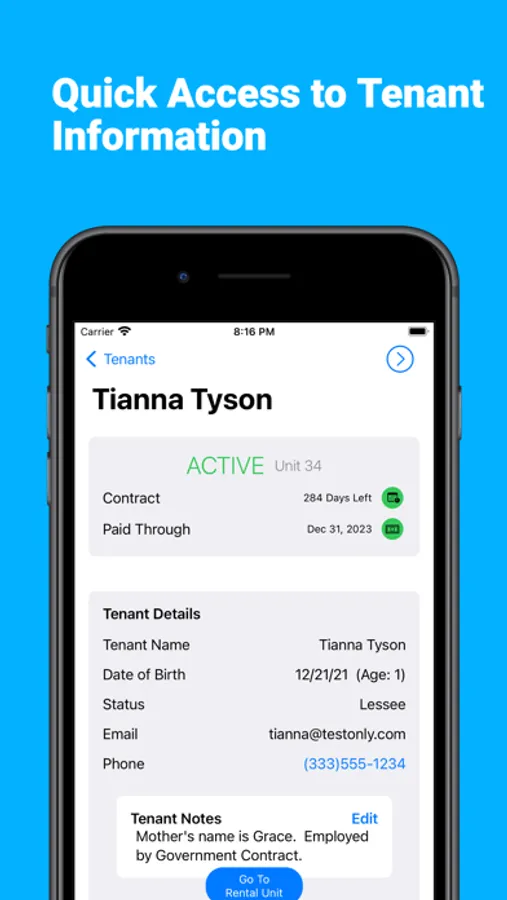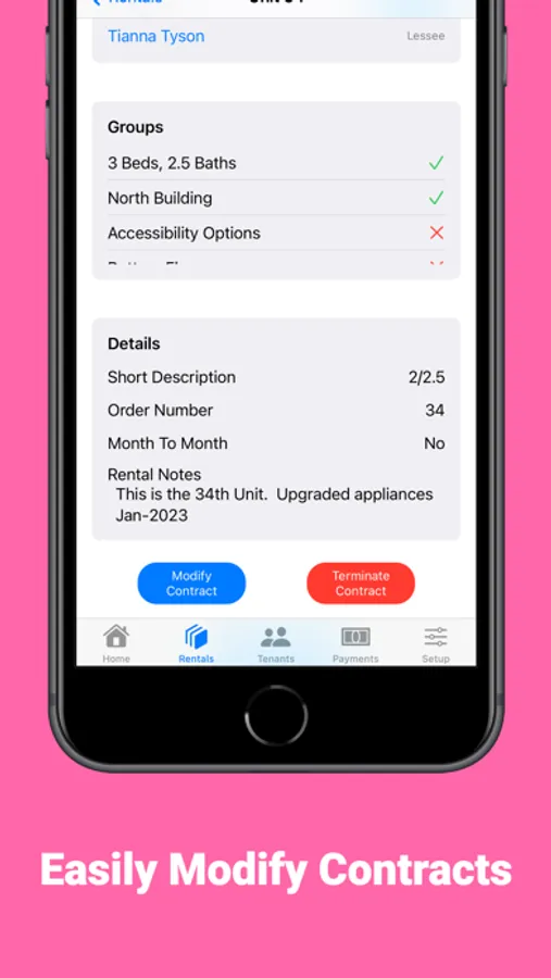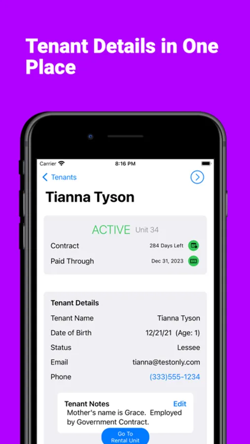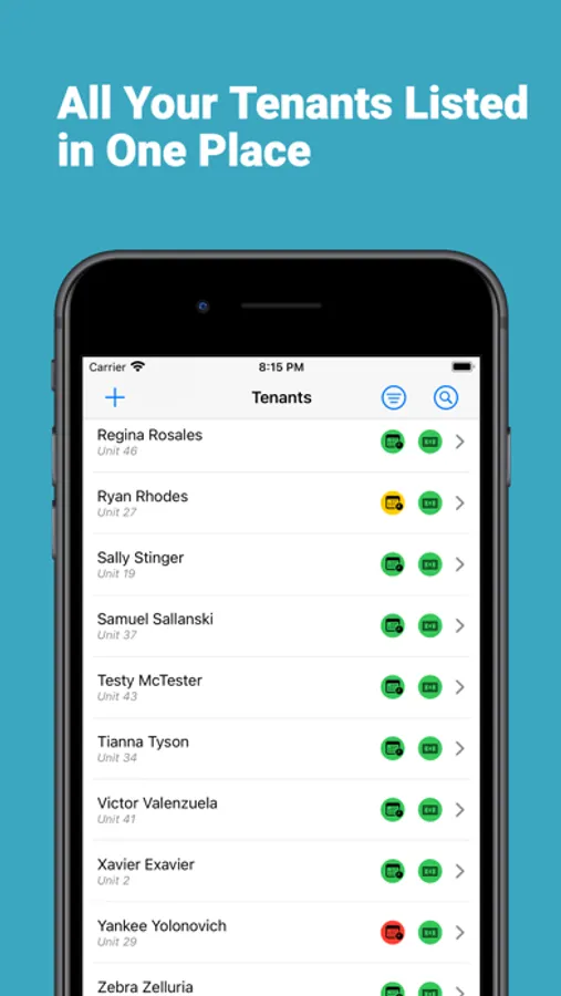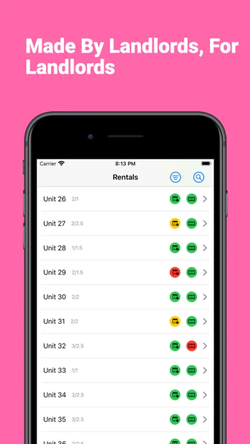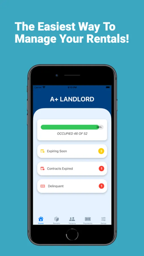 With this app you’ll know instantly which of your rentals is available, occupied, expiring, delinquent etc.
