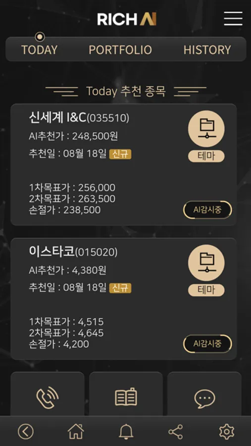 추천 종목의 매수, 매도, 목표가, 손절가를