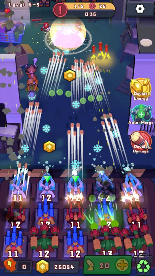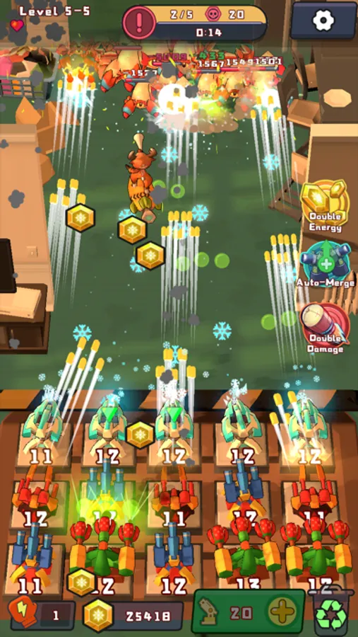 - Merge Turrets: Merge to upgrade the turrets' fire power;