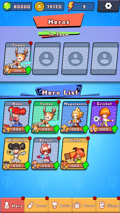 - Heros: Multiple cute heros to activate the group skills in the battle;