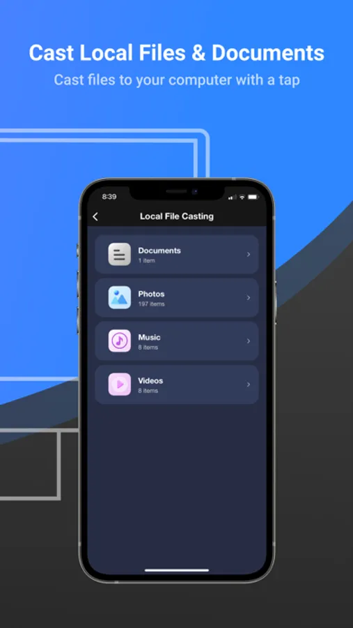 - Cast apps and files with ease. Play music, films, games, and share photos with your families on a larger screen. Make your spare time more exciting.