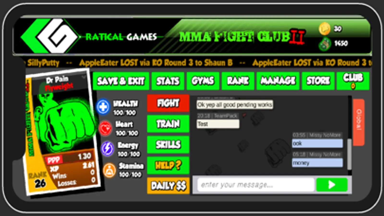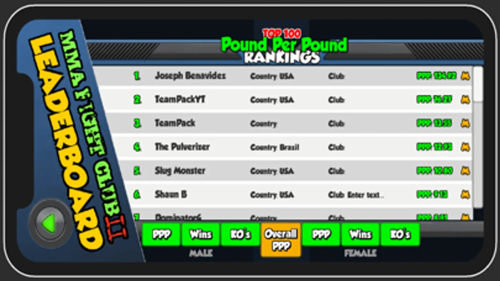 MMA Fight Club is back and better than ever! It's now the perfect blend of a strategy and fighting game. Easy to play but challenging to master. Create your own MMA fighter, train them, learn new skills, create new combos and battle your way to the top of the pound per pound rankings. Male and female fighters are now supported along with your choice of hair styles, facial features, colors and more. Invite your friends to your club and increase your fighters offensive and defensive skills. Train different areas of your fighters attributes with a variety of mini games. Buy gyms to increase your income enabling you to purchase more powerful skills. Combine skills to create combos for ultra powerful additions to your offense and defense. Take on ranked fighters and earn double bucks when you knock them out! New! Compete in daily, weekly and monthly competitions!