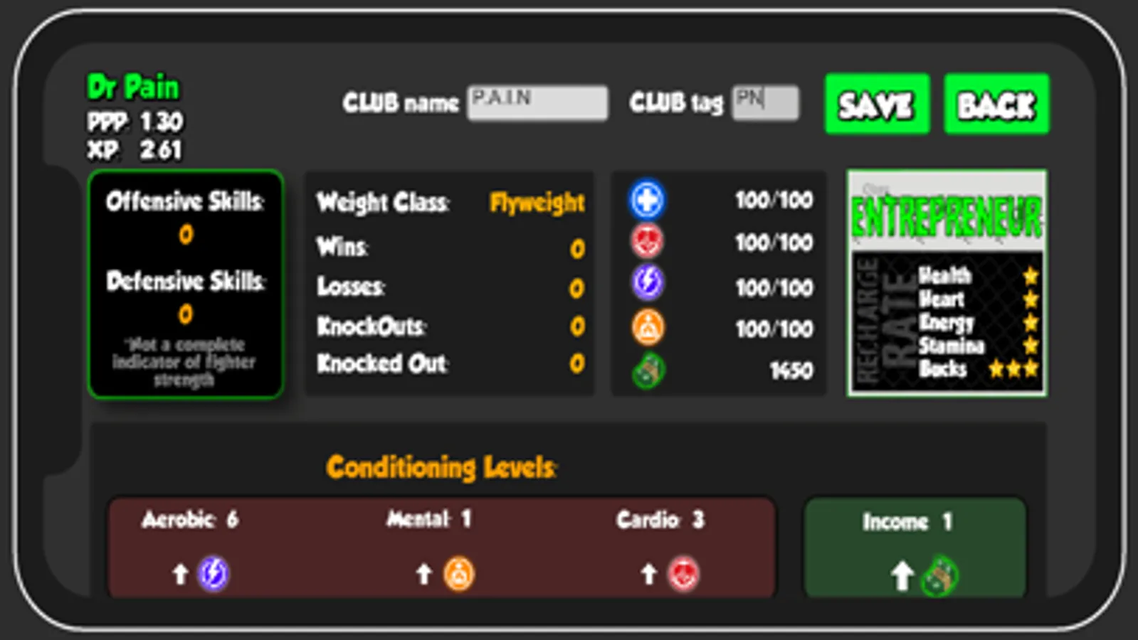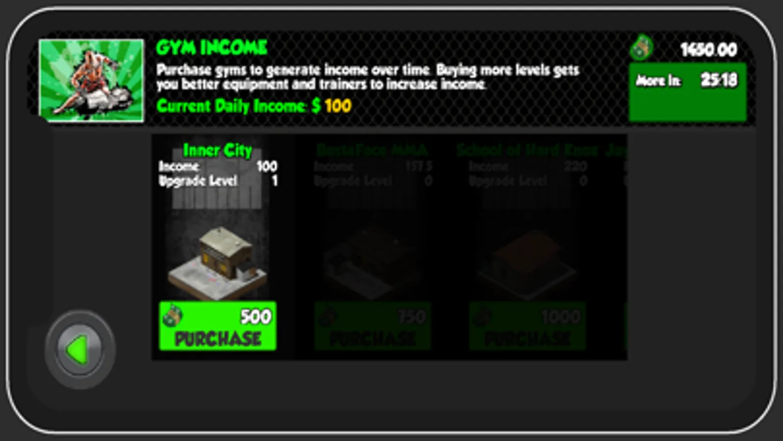 MMA Fight Club 2 is much different than all the other MMA fighting games out there. We've combined the traditional strategy game of building a character up with many types of training mini-games and attributes (energy, health, stamina, strength, etc) with a social game (build up your fight club) and a fighting game (both real time and AI). The game is easy to play yet difficult to master. Build up too much strength and slow your energy replenish rate. Fight too hard too fast and drain your Anaerobic meter. Learn to jab as a defense until you've unlocked your blocking skills. Keep your opponent off balance with different levels of attack. Throw a kick to open up a jab or hook. All of these things and much more are built into the game!