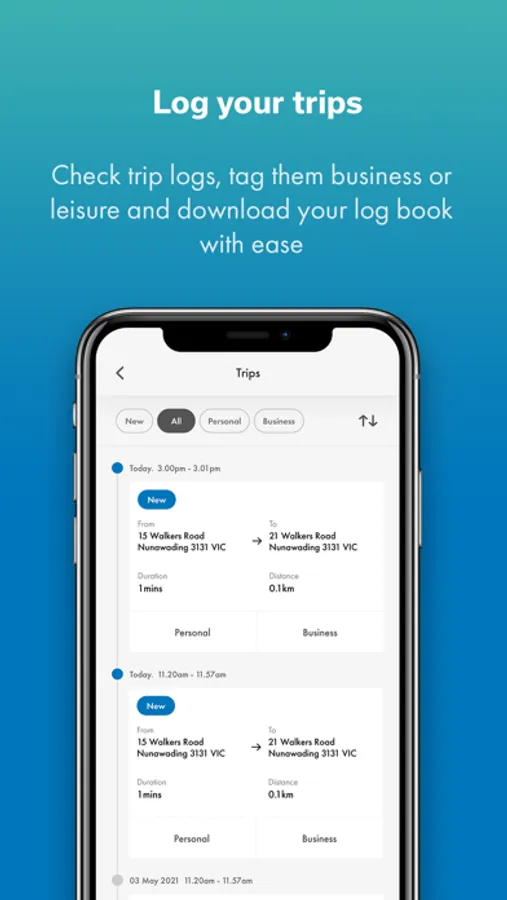 Log trips with ease - check trip logs, tag them business or leisure and download your log book with ease.