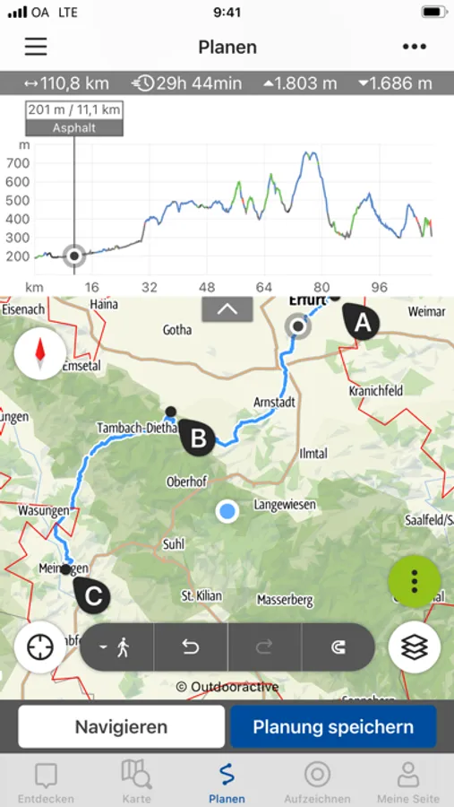 Zur App: Auf einer interaktiven Karte sind alle Touren und Wegenetze gelistet. Neben Wanderwegen, Beschreibungen und Infos zur Anreise findest du nützliche Details zu den Standorten von Schutzhütten, Unterkünften und Gastronomie. Die App ist ein perfekter Wegbegleiter durch die Regionen des Thüringer Waldes und bietet dir die Möglichkeit, neben Routenvorschläge auch individuelle Touren zu planen.