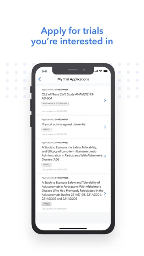 -Option to apply for clinical trials based on inclusion/exclusion criteria