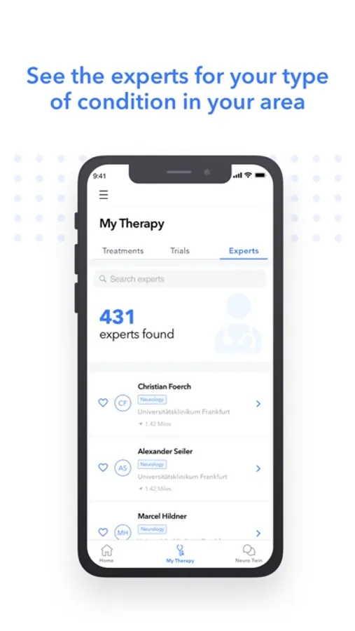 Neuria is an app for neurological disease patients and their carers or loved ones which aims to support you with information to navigate your treatment journey. The app provides accurate and current information from trustworthy sources on therapies, clinical trials, and experts, based on your disease profile and details entered in the app.