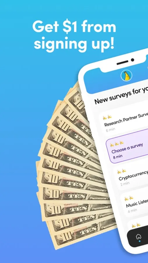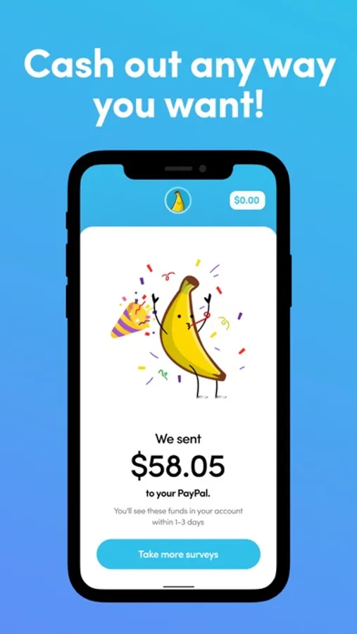 Signing up for BananaBucks is free, and it's no monkey around. As the king of the survey jungle, we ensure you're pre-qualified for top-paying surveys. Our bunch pays 40% more! Add our instant payout bonuses, daily polls, and $5 minimum cashouts to your fruit basket, and you'll be cashing in faster than a chimp can climb a tree. Most of our users fill their pockets in just 1-2 days!