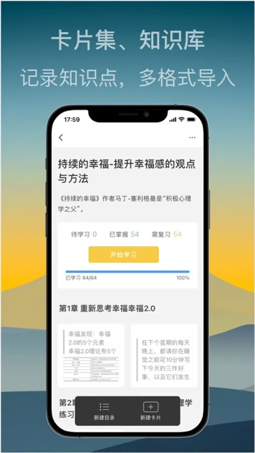 在阅读时,随时将重点内容摘录下来;导入微信读书笔记,直接将微信读书中的笔记与想法转换成卡片,永久保存,随时学习。