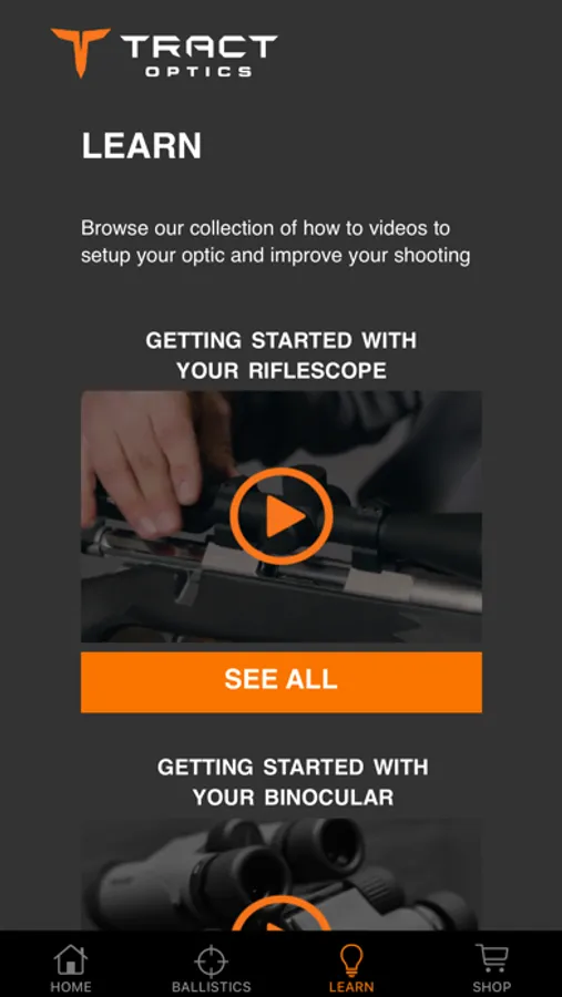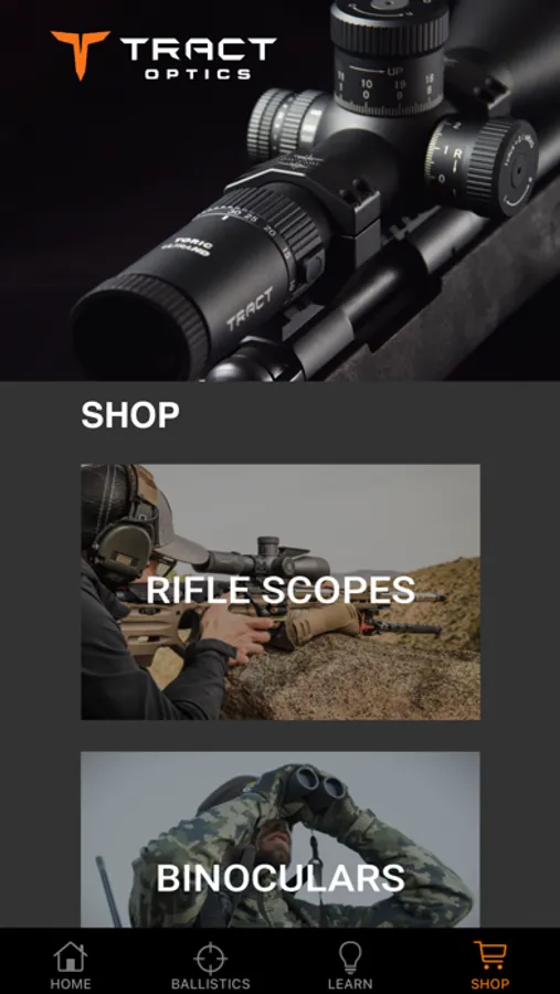 The TRACT Optics Impact Ballistics mobile application takes the guesswork out of long-range shooting and provides data to help the most experienced shooter as well as the beginner or novice. This mobile application is one of the most comprehensive databases of information available today. With virtually every modern ammunition manufacturer’s information listed shooters can match any TRACT rifle scope reticle to their exact cartridge. Simply select your scope, then your ammo/bullet the program will calculate the bullet drop information as it pertains to your reticle automatically. If you cannot find your particular round of ammunition in the program, simply add the Ballistic Coefficient (B.C.) and Muzzle Velocity to the program and you will be good to go. With the ability to import current weather conditions the Impact program will provide up to date Bullet Drop Compensation to help you make accurate shots in the field or at the range. While the mobile application is designed to provide ballistic date without an internet connection, when the user has an internet connection, they are able to access our complete library of videos, articles, and blogs. Simply navigate to the Learn section of the app and you can access the Getting Started section for Rifle Scopes, Binoculars and Spotting Scopes as well as Pro Shooting Tips with videos detailing How To videos showing how to maximize the performance of your optic. You can even shop our complete line of Optics and Accessories right from the App. This app will be continually updated with new ammunition information, new product releases and videos. Selectable options include Meters or Yards, Drag Table, Spin Drift, Sight Height, Printable Dope and BDC cards, the ability to compare loads, atmospheric conditions (manual entry or automatic import), wind direction, sight setting/zero calculator and much more. The program is capable of providing ballistic data out to 2,500 yards. The BDC card allows the shooter to print out a “cheat sheet” that can show the bullet drop at each magnification (for Second Focal Plane scopes) The Dope card provides velocity, energy, path, drop, wind drift, time of flight, # of click value and MOA or MRAD info in 5, 10, 25, 50 and 100 yard increments. Weather/Atmospheric conditions can be automatically imported thanks to our direct link to World Weather Online, or you can manually enter the Temperature, Altitude, Barometric Pressure and Humidity through the Conditions section. The conditions section also allows the user to enter Bullet Wind Drift information such as wind speed and direction and provide data in inches, MOA or MRAD. The sight settings section is a great resource for shooters who would like to zero their rifle at a further distance then they are able to shoot. For example, if a user only has access to a 100-yard range but would like his rifle to be zeroed at 200 yards, the Sight Setting section will show the user where his bullet needs to impact on a 100-yard target to be zeroed at 200 yards. Our goal for this app is that it provides you with a comprehensive resource for everything and anything related to TRACT Optics…Where you Belong.