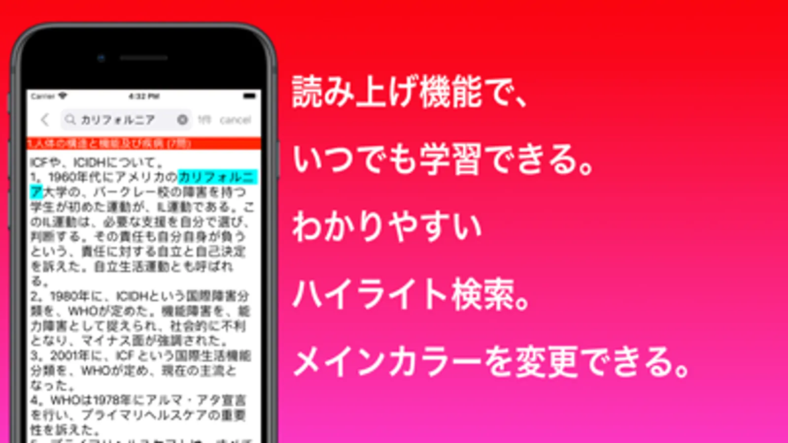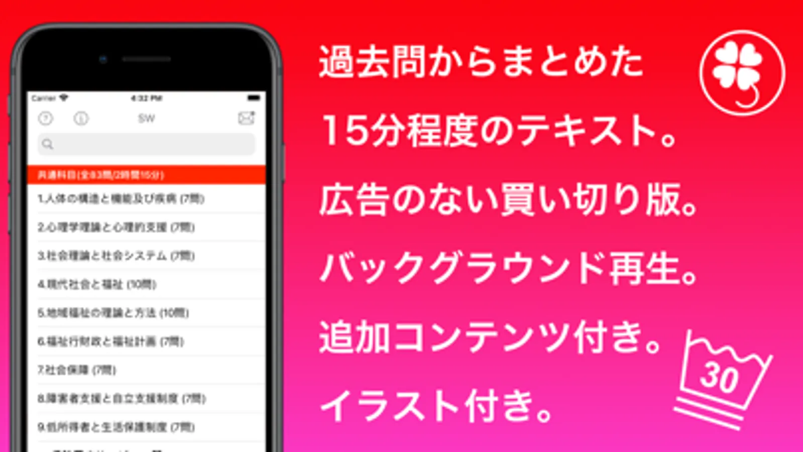 社会福祉士の各科目を、15分程度のテキストにまとめています。スピーチ機能を使用して、手軽に勉強できるアプリを製作しました。広告がなく、快適に学習することができます。更新も有料版を優先して行います。