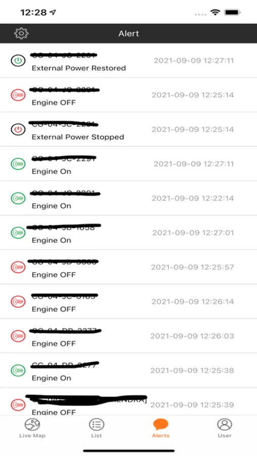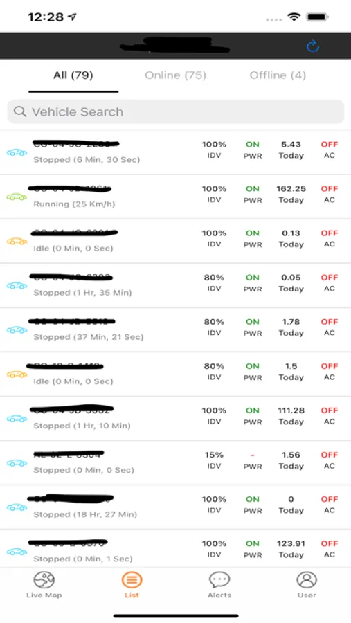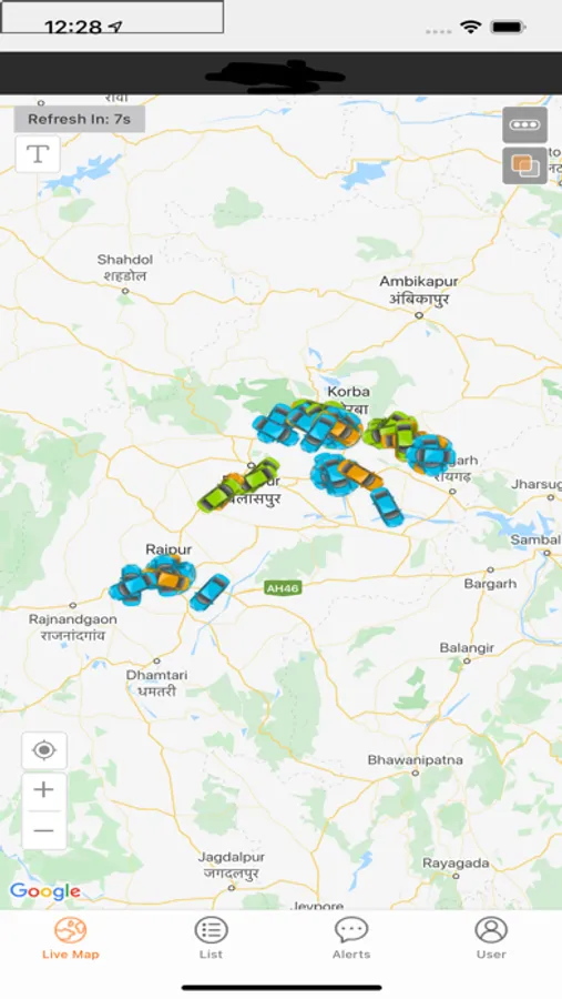 Location of the vehicles is tracked on the map as it moves from point to point.