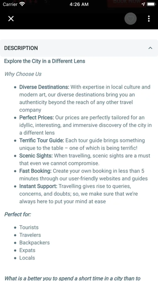 Choose from unique, one of a kind places all over Europe to explore. Find everything from the heart of the city's tourist attractions to history, art, culture and even nightlife! Browse through listings of cities you'd love to know better, explore better or just relax, and book your tour directly in the app or save it to your