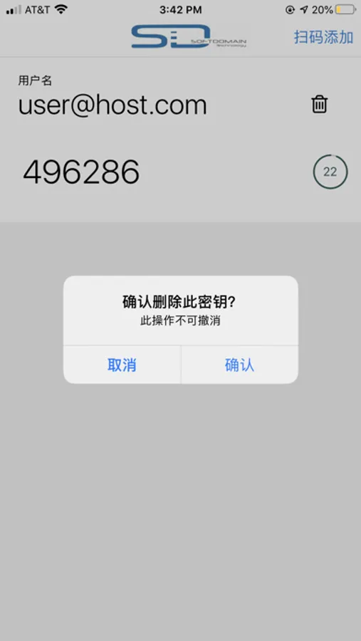 此版本为软域科技动态令牌1.1版本用户可以通过扫描二维码添加动态令牌,令牌为6位,基于国密算法SM3生成。每隔30秒新生成一次,可以添加多个令牌。