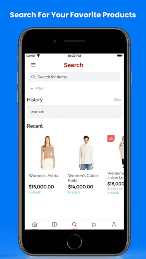 4.Easily type in the product you are looking for in the 'Search' tab and find it instantly.