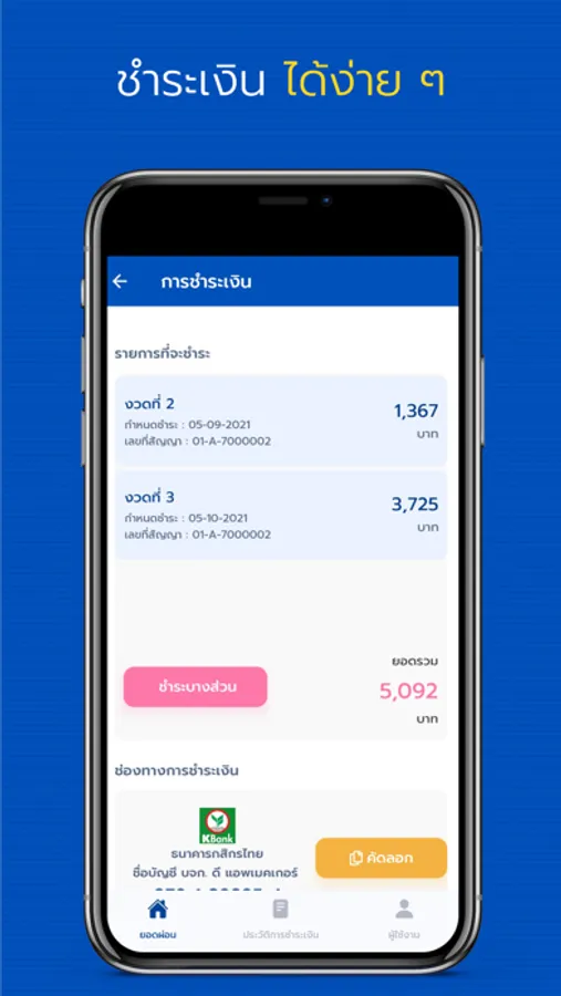 1. ดูงวดชำระ วันที่ชำระ เงินต้น ดอกเบี้ย
